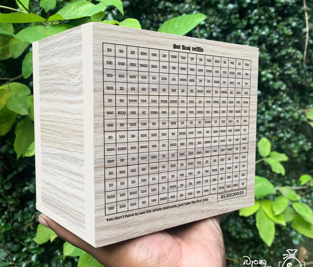 දියුණු රටවල භාවිතා කෙරෙන සහ විද්යාත්මකව සනාථ වී ඇති වඩාත් සාර්ථකම මුදල් ඉතිරි කිරීමේ ක්රමයක් පාදක කරගෙන ශ්රී ලංකාවේදී නිමවෙන කැටයක් තමයි මේ බැංකු පෙට්ටිය කියන්නේ.